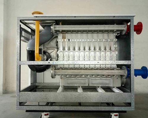 其次该款锅炉采用的是内部对流换热和辐射换热相结合的方式,烟气在锅炉内部冷凝,不需要额外加装冷凝余热回收装置。锅炉材质为硅铝镁合金,不仅轻便、传热快,而且耐腐蚀性强,使得锅炉寿命能够达到40年。